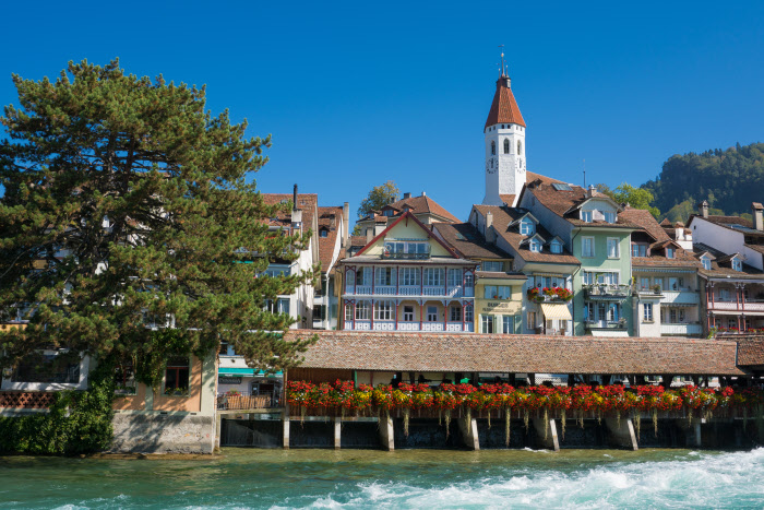 INTERLAKEN – Obere Aareschleuse und Thuner Altstadt.